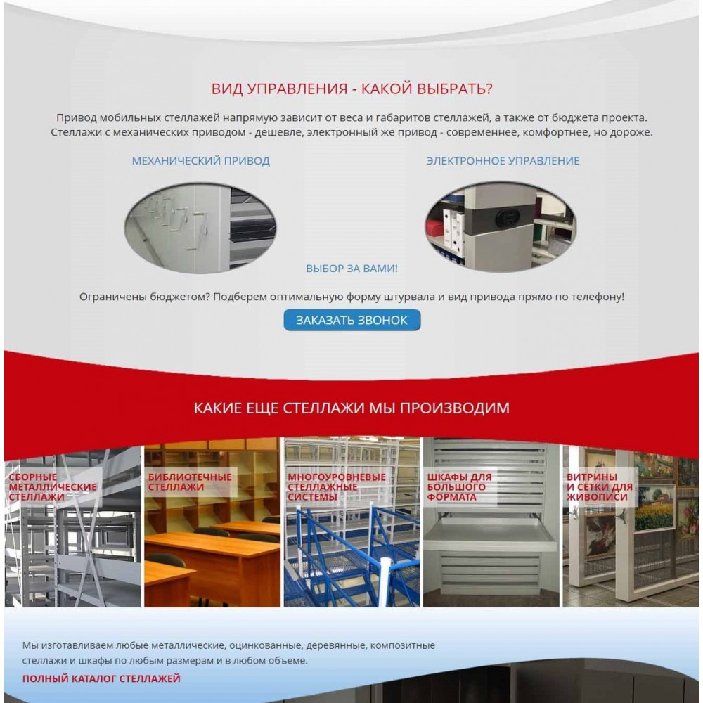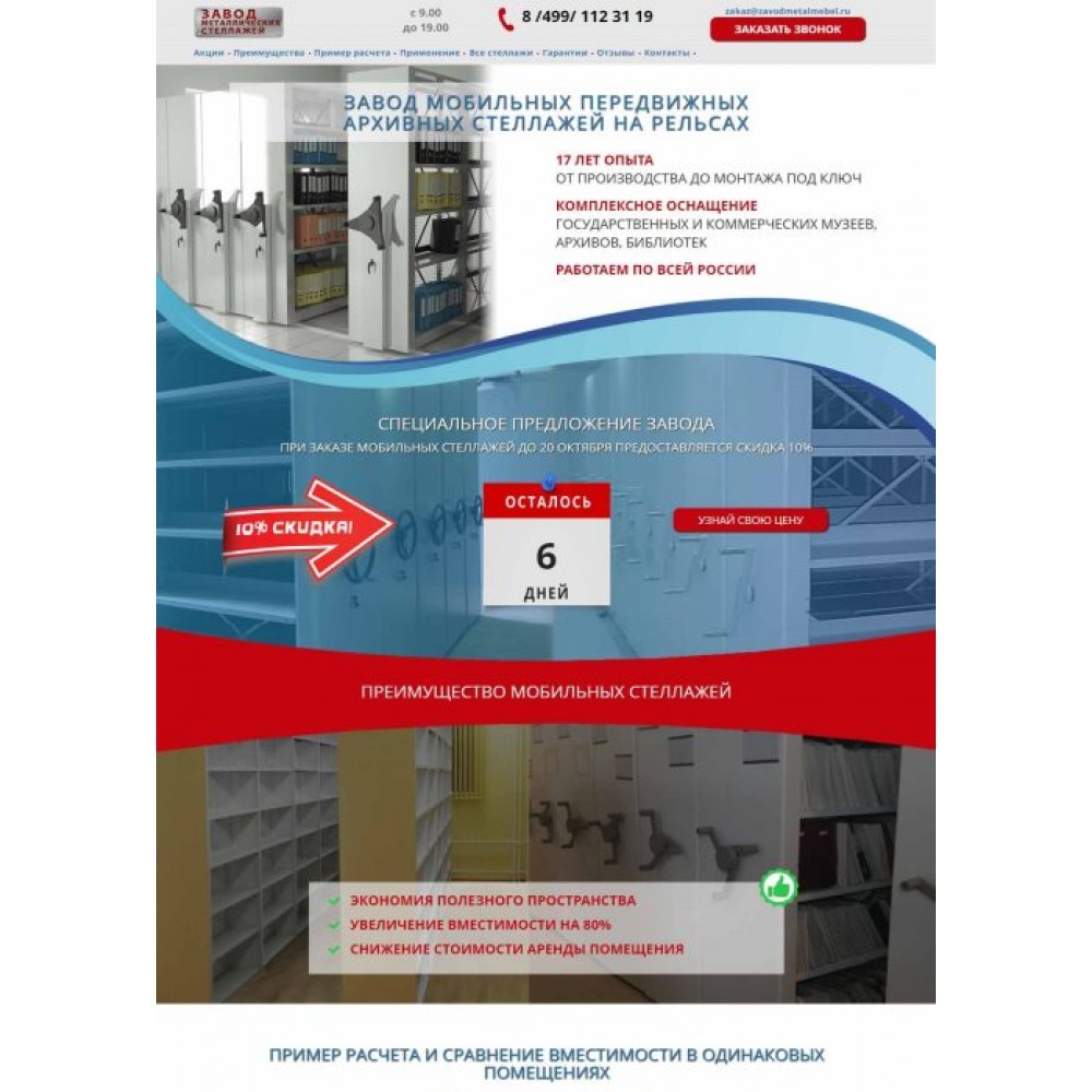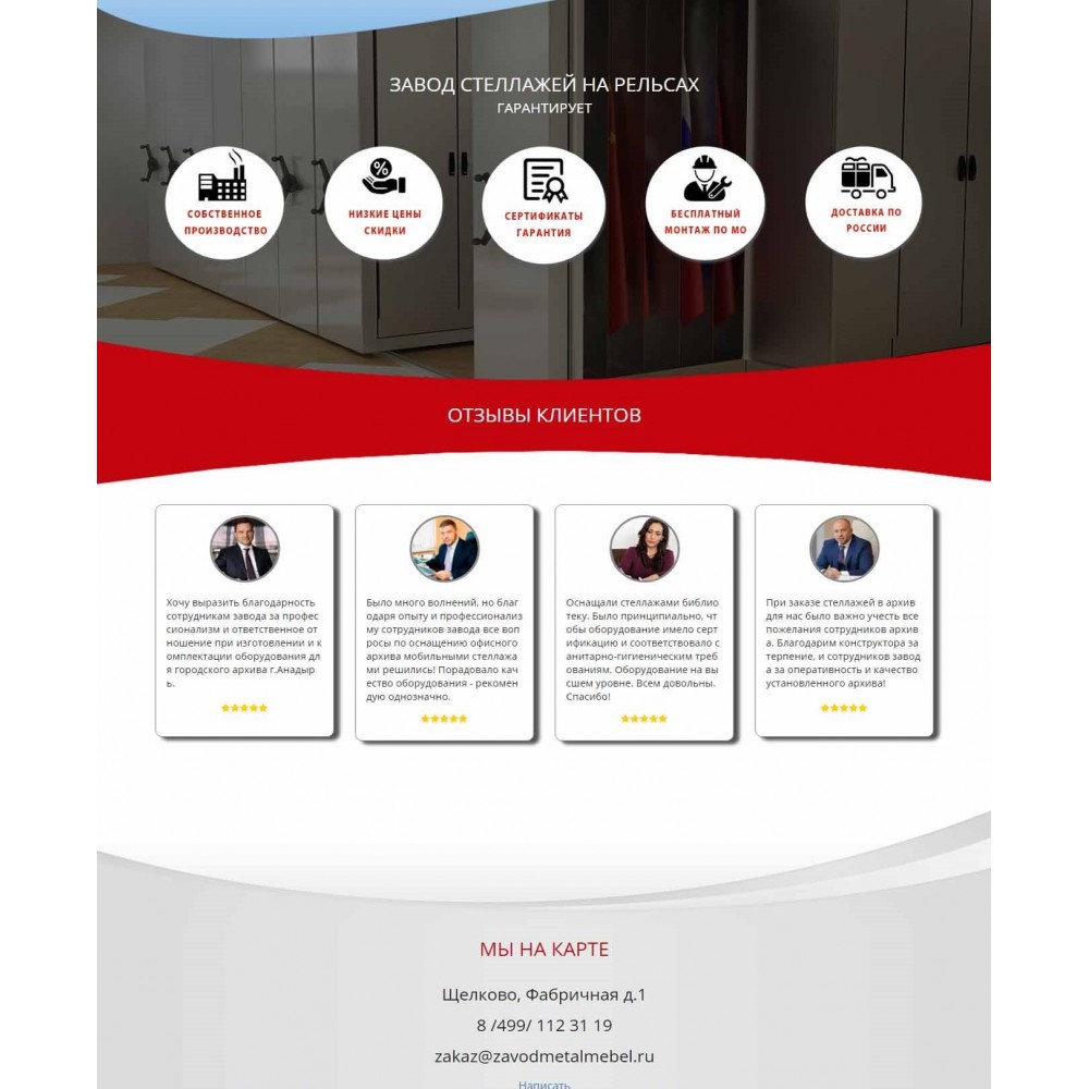 Рекламная страница (лендинг) завода мобильных стеллажей от веб-студии Максвебсайт г. Красноуральск