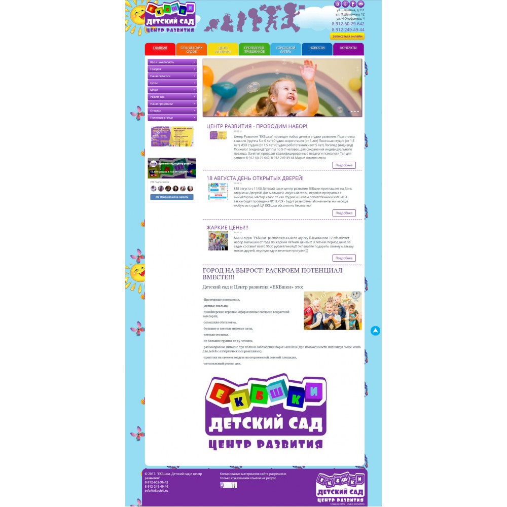 Рекламный сайт сети детских садов Екбшки от веб-студии Максвебсайт г. Красноуральск