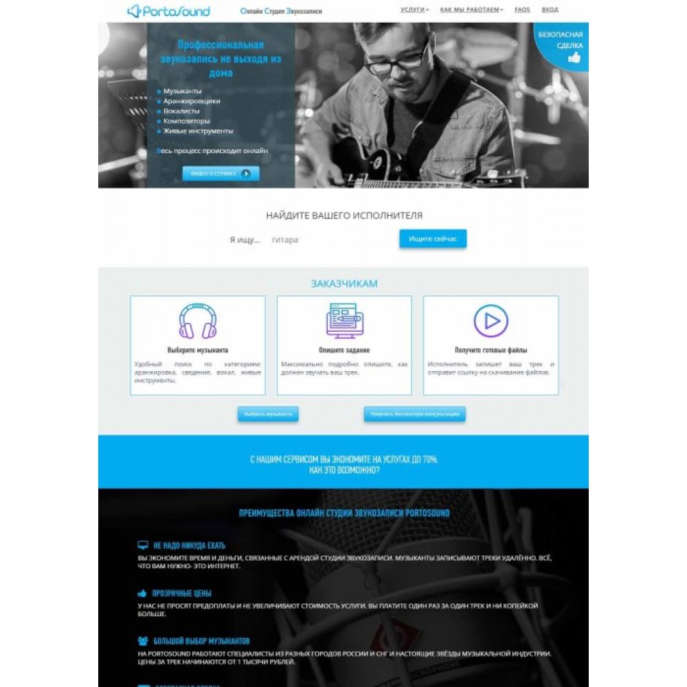 Сайт онлайн-студии звукозаписи Portosound г.Москва от веб-студии Максвебсайт г. Красноуральск