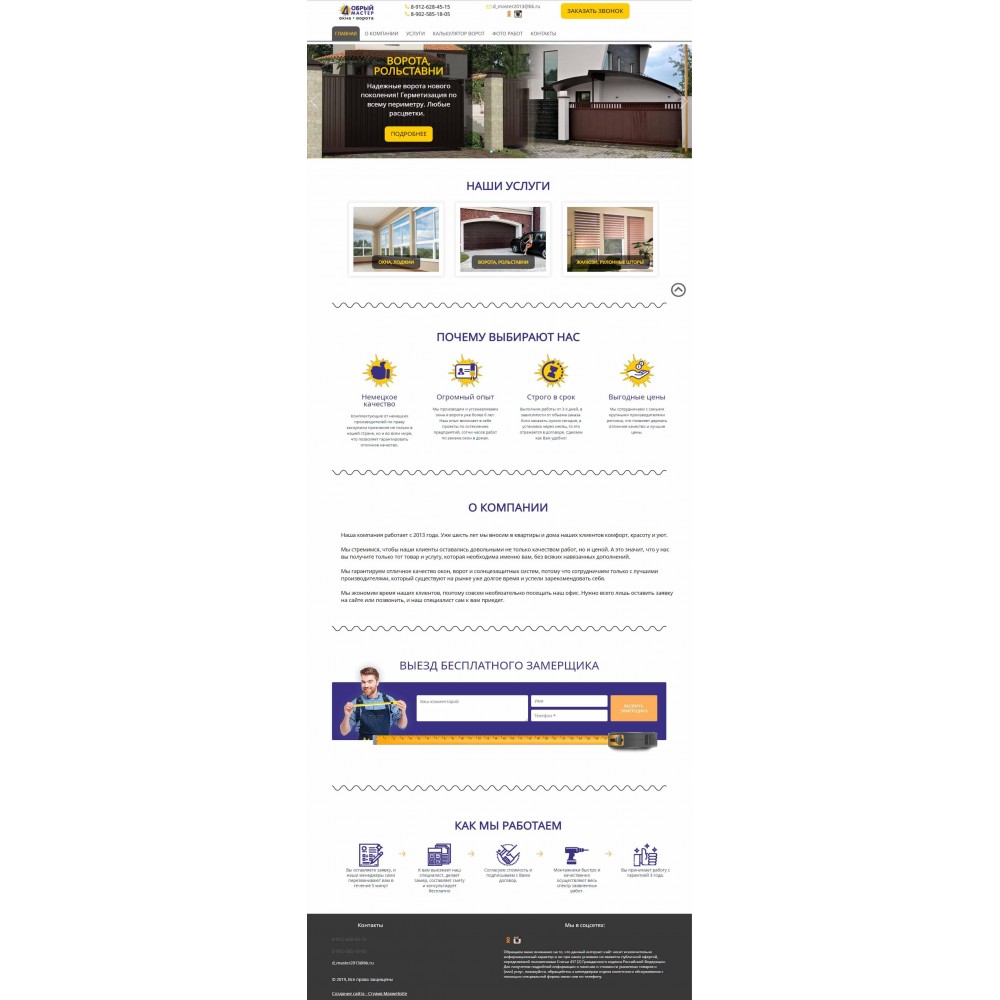 Сайт каталог услуг компании по установке окон и ворот г.Ревда от веб-студии Максвебсайт г. Красноуральск